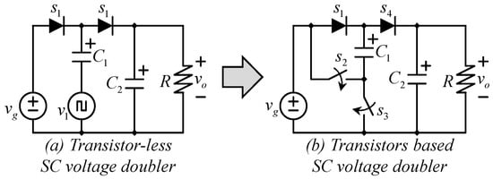 - Law, K.; Cheng, K.; Yeung, Y. Design and analysis of switched-capacitor-based step-up resonant converters. IEEE Trans. Circuits Syst. I: Regul. Pap. 2005, 52, 943–948. [Google Scholar] [CrossRef]