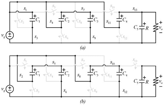 - Zou, K.; Scott, M.J.; Wang, J. Switched-Capacitor-Cell-Based Voltage Multipliers and DC–AC Inverters. IEEE Trans. Ind. Appl. 2012, 48, 1598–1609. [Google Scholar] [CrossRef]