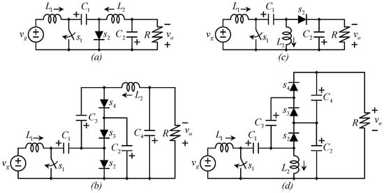 - Axelrod, B.; Golan, G.; Berkovich, Y.; Shenkman, A. Diode–capacitor voltage multipliers combined with boost-converters: Topologies and characteristics. IET Power Electron. 2012, 5, 873–884. [Google Scholar] [CrossRef]