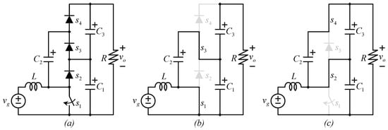 - Alcazar, Y.J.A.; Oliveira, D.D.S.; Tofoli, F.L.; Torrico-Bascope, R.P. DC–DC Nonisolated Boost Converter Based on the Three-State Switching Cell and Voltage Multiplier Cells. IEEE Trans. Ind. Electron. 2012, 60, 4438–4449. [Google Scholar] [CrossRef]