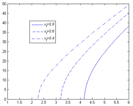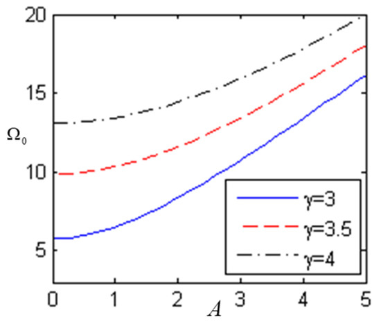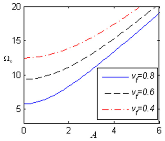 In order to verify the effectiveness of the proposed method, numerical comparison and discussion are presented in this section. In Figure 6, the curves at different axial speeds are plotted for vf = 0.8 kf = 1, where Ω is nonlinear frequency and A is amplitude. It is shown that the increasing trend of frequency is consistent with the axial speed. A lower axial speed yields a smaller nonlinear frequency.