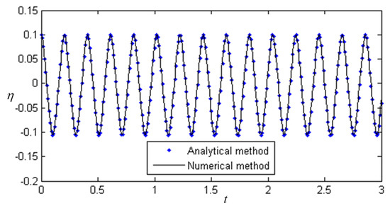 Figure 10 can prove the accuracy of the solutions (61) and the effectiveness of the homotopy analysis method. The parameters chosen in this section are γ = 3, A = 0.1, vf = 0.8, and the nonlinear coefficient is chosen as a larger value, . The approximation, (61), is consistent with the numerical results. Note that the method in this paper is valid for weak and relatively large cases; it does not work for the extreme case where vf approaches infinity.