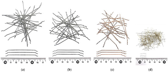 Types of steel fibres for normal, high- and ultra-high performance concrete: (a) 3D-fibre (b) 4D-fibre (c) 5D-fibre and (d) high-strength micro steel fibre.