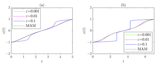 where represents the geometric minimum action. As we can see, the action is invariant under reparametrization. Thus, it enables us to treat the infinite time—as displayed in the constraints in Equation (18)—with finite discretization points. The above algorithm can then be used to calculate the OP, which is known as the geometric minimum action method (gMAM). Since only the NOP is plotted in this paper, we do not repeat the gMAM here. One can refer to [48] for further details.