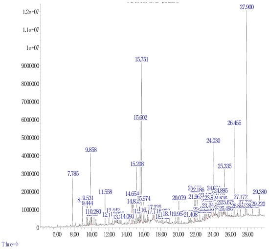The identification of phytocomponents present in the extracts was carried out using the GC-MS technique according to the protocol detailed in our previous studies [24]. The mass spectra were matched to the NIST database for identification of compounds [25].