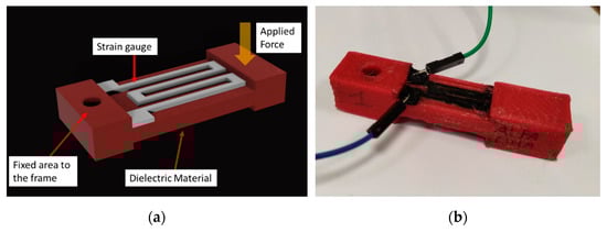 Stano et al. [11] fabricated in a single step a smart load cell composed of TPU and four embedded strain gauges (conductive material): after connecting the strain gauges in a full Wheatstone bridge configuration, a sensitivity of 0.008 in the range [0, 100] g was found.