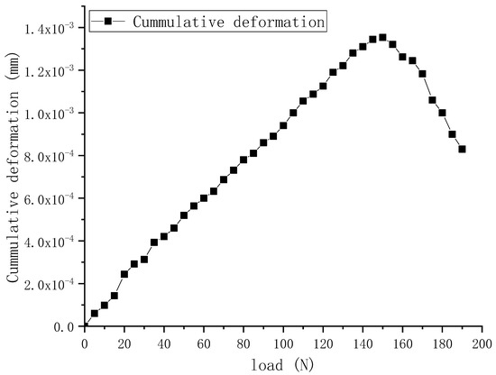The elastic interval of cattle enamel samples was tested, and the load–deformation curve is shown in Figure 2. The range of the load was 0~190 N and the deformation of cattle enamel was measured; thus, it can be concluded that the elastic range of bovine enamel was 30~120 N. In order to verify the accuracy of the CDH detection system, the range of 40~50 N was selected as the loading range, the pressure interval was 1 N, and the stability time was 10 s.