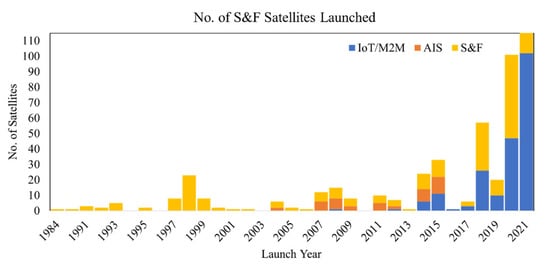 In addition, recent applications of satellite-based S&F systems have enabled achieving IoT/M2M, which are also referred to as satellite IoT (SIoT), and automatic identification system (AIS) applications for tracking ships. At least 18 space startups entered the IoT market in 2018, and an exponential growth in the number of satellites employing S&F for IoT/M2M could be observed from this period in