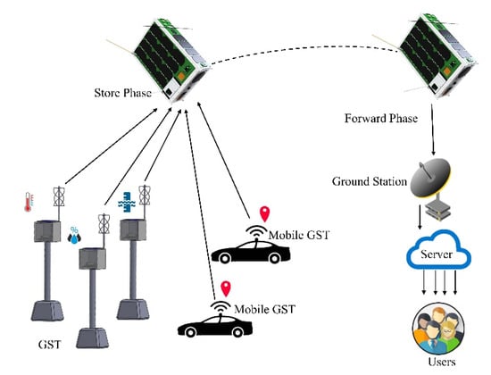 A satellite-based S&F system is a communication technique in which a satellite is used as a gateway for data collection and dissemination. Therefore, the basic principle of operation requires establishing communication between a terrestrial station and a satellite to uplink successfully. The next step could be described as storing data in the satellite through that uplink. Finally, the stored data could be downloaded to another ground station to be distributed or forwarded to its destination [