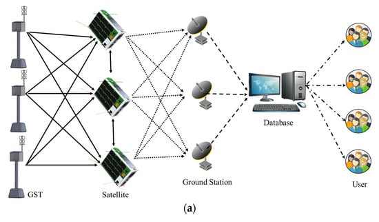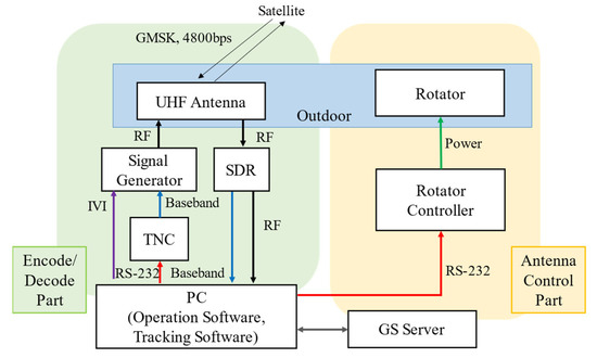 Figure 22. From the operation experience of previous satellites from the same ground station, approximately 7.9 kB of data can be downlinked per ground pass using 400 MHz UHF frequency. Integrating the data downlinked for four passes a day, all the data collected by the payload receiver can be downlinked and uploaded to the database within a day. The maximum latency between data transmission from the GST to the data reception from the database is 24 h. This latency is acceptable for delay-tolerant applications.
