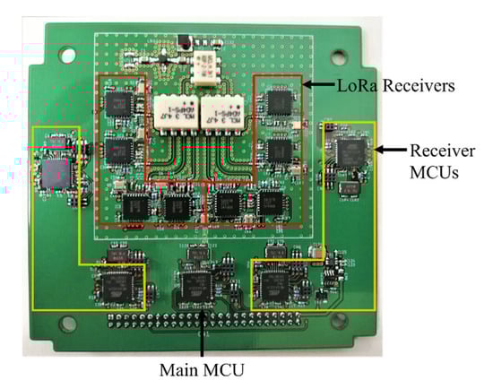 SIoT mission payload has eight LoRa receivers to ensure data reception from at least eight GSTs simultaneously. Each pair of these receivers is controlled and configured by one receiver microcontroller unit (MCU) using serial peripheral interface (SPI) communication protocol. Four of these receiver MCUs are in turn controlled by the main mission MCU, and the block diagram of the payload is shown in