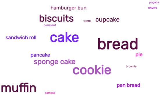 Figure 7 shows the word cloud for the textural attributes assessed through sensorial analysis in bakery products. As observed before for the textural properties, the sensorial properties are also highly variable in terminology, for example, in terms like elasticity and springiness. The most frequently assessed properties include cohesiveness, hardness, chewiness and springiness.