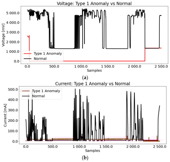 Type 1 anomalies in (a) voltage and (b) current data.