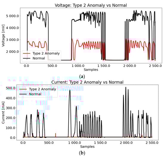 Type 2 anomalies in (a) voltage and (b) current data.