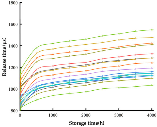 Then, the storage degradation model of the relay release time is obtained by substituting Equation (6) into Equation (4), as follows: