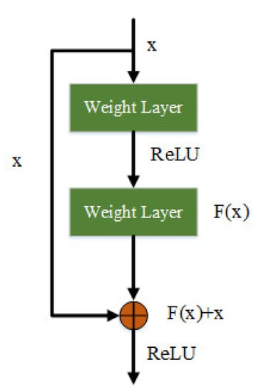 Residual learning is the core of ResNet, whose main feature is the introduction of the concept of “shortcut connection” by establishing residual blocks. The schematic diagram of the residual block is shown in Figure 5.