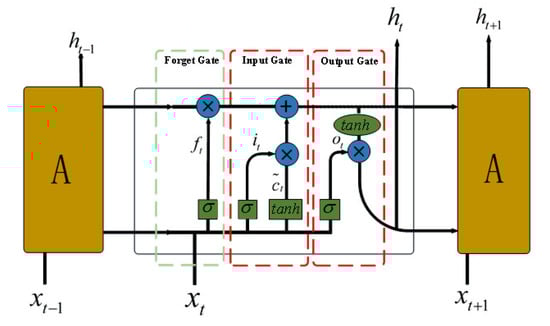 where, is the output of the output gate, is the hidden state of the previously hidden layer, is current input, is bias term, is the hidden state, is the cellular state of the current moment.