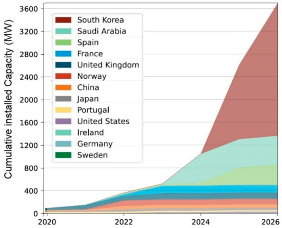 Floating wind turbines can be installed far offshore and in deep waters. The shift to offshore will increase the use of offshore wind farms. There are plans to install more floating wind turbines in Southeast Asia, Oceania, and Northern Europe (Figure 6).