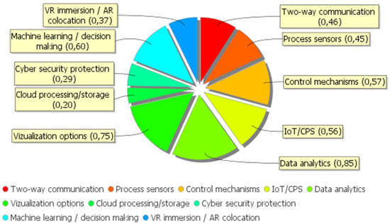 One can notice that stimulation of the circular economy is being ranked first because of its industry-wide implications, and data analytics processes as well as visualization options can provide the most direct benefits in implementing the environmental-related objectives. Thus, these two areas form a lucrative development direction for software companies to address while working on the next generation of digital twins. Additionally, they can come to represent important areas for academia and researchers to develop new approaches, algorithms, and solutions that reveal results that are difficult to grasp, such as management system maturity [45].