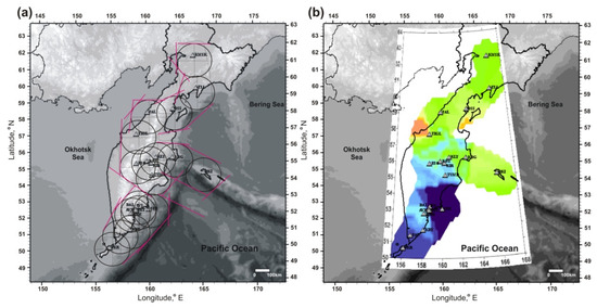 44. Kopylova, G.N.; Ivanov, V.Y.; Kasimova, V.A. The implementation of information system elements for interpreting integrated geophysical observations in Kamchatka. Russ. J. Earth Sci. 2009, 11, ES1006. [Google Scholar] [CrossRef]