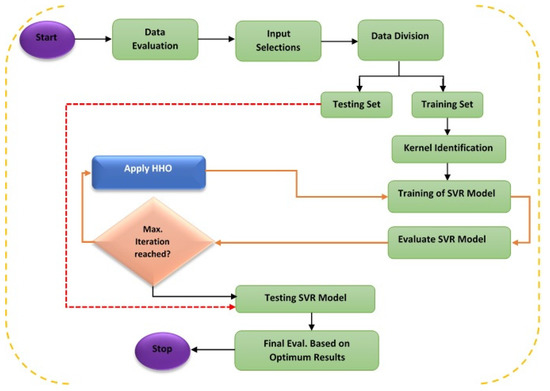 In spite of the availability of ample metaheuristic models, there is no particular model that can guarantee consistent optimal performance in addressing various types of issues. Yet, the latest research on unique population-based and nature-inspired optimization paradigm (HHO) models indicated better adequacy in establishing optimal solutions to problems in multi-objective forms. The statistical analysis outcomes and comparisons revealed that the SVR–HHO model yielded promising and often competitive outcomes compared with well-established metaheuristic models.
