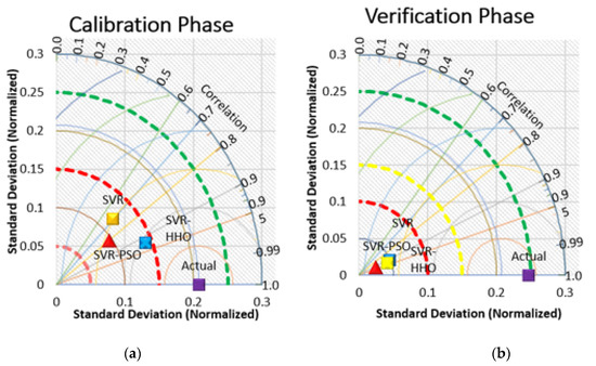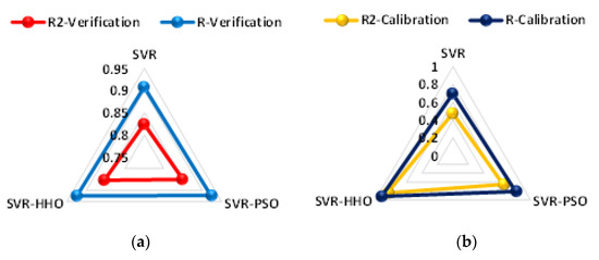 With respect to the prediction ability of the SVR, SVR–PSO, and SVR–HHO models, it was found that the SVR model was not good enough at calibrating and verifying the GRG of the PTFE matrix composites. The reason for the poor performance of the SVR model compared to its hybrids might be due to the highly complex and nonlinear nature of the data. Fundamentally, it should be considered that the promising prediction occurred in the course of the training phase, which is originally used to precisely measure the model based on known inputs and outputs. Nevertheless, the verification stage is significant in appraising the efficacy of the models, since it closely inspects the models’ prediction efficiency based upon unknown magnitudes. This advantage is not enjoyed by the training phase of the SVR model. Consequently, a robust model should possess a determinate and balanced performance in both its training and testing stages. In general, the optimization algorithms showed promising ability when compared with a single model. The exceptional performance of the hybrid models is attributed to their ability to reduce errors and complexities. The slightly higher performance of the SVR–HHO model in comparison to the SVR–PSO model related to its cooperative mechanism and hunting behavior. Furthermore, the R values of the models were determined to be > 80%, supporting the conclusions drawn by [