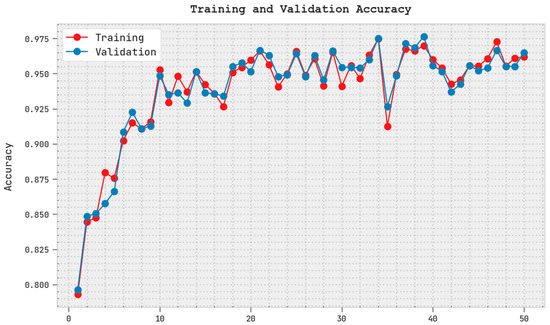 The training accuracy (TRA) and validation accuracy (VLA) gained by the PODCNN-LWID approach with the test dataset is shown in Figure 6. The experimental outcome implies that the PODCNN-LWID methodology attains maximal TRA and VLA values. The VLA is greater than the TRA.