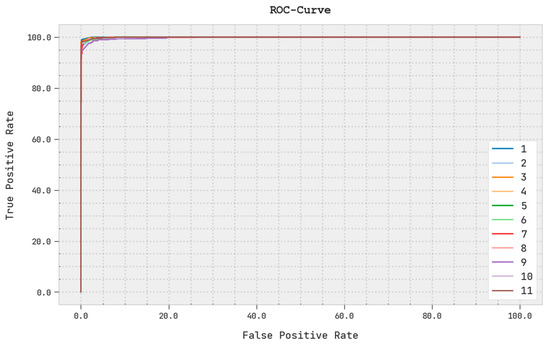 A brief ROC investigation of the PODCNN-LWID algorithm on the test dataset is displayed in Figure 9. The results indicate that the PODCNN-LWID method exhibits its ability in categorizing distinct classes in the test dataset.