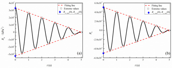 where N and T are the number and period of cyclic loading, respectively. The extreme values of Equation (7) can be determined based on the first-order derivative σ(τ). Thus: