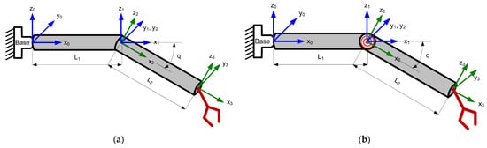 Two types of connections in a two-link serial system [63]: (a) a rigid connection and (b) an elastic connection.