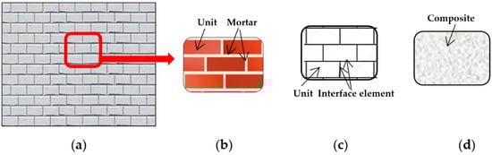 - Zucchini, A.; Lourenço, P.B. A micro-mechanical model for the homogenisation of masonry. Int. J. Solids Struct. 2002, 39, 3233–3255. [Google Scholar] [CrossRef]