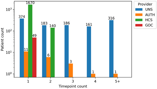The data collection process was followed by numerous challenges associated with each step in the process. The process of clinical data extraction was time-consuming and error-prone, as the patient timeline had to be strictly followed, hindered by the hospital information system (HIS) design, as medical reports of different departments (e.g., radiology and pathology) are usually clearly separated. For these reasons, all patient specific reports were examined, timelines were restored, and time points were defined before the data input in the clinical data sheets. During the operating hours, the HIS was usually overburdened with requests and data extraction is slowed; for these reasons, data providers with a larger number of patient weekends were the only option for faster data access. Moreover, in cases when the hospital provides for the wider geographical region, some patients were referred to the hospital only for specific interventions, such as surgery, treatment protocol definition, or specific imaging (PET), while other time points on the patient journey were performed locally and information was made unavailable. For these reasons, patients with at least four consecutive TPs available (“complete cases”) were differentiated from those with less or intermittent TPs (“incomplete cases”) in order to facilitate the selection of patients for the training of AI models.