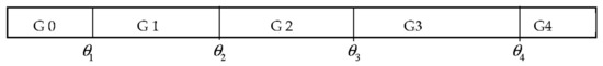 Therefore, if the training sample of optimal RISI is greater than or equal to the threshold , it would be determined as grade , otherwise it would be judged as grade . Therefore, the thresholds divided the RISI into five intervals, as shown in Figure 1.