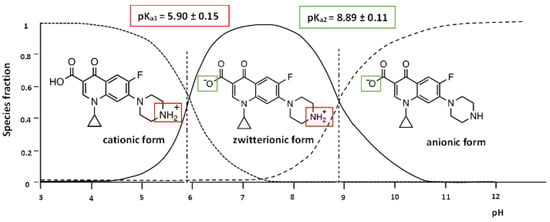 Ciprofloxacin (CIP) is a fluoroquinolone antibiotic which has been widely employed in the treatment of infections in humans and animals in recent decades. Chemically, CIP is a 1-cyclopropyl 6-fluoro-4-oxo-7-piperazine-1-yl-quinolone-3-carboxylic acid, which has an extended aromatic region and functional groups suitable for hydrogen binding. CIP can possibly enter an aqueous environment via either the incomplete metabolism of the body or wastewater from drug manufacturers []. The concentrations of CIP can be detected in wastewater and surface water at concentrations of one-hundred ng/L to μg/L []. The presence of CIP in wastewater and surface waters, even at trace concentrations, can still have negative effects on environmental ecology and human health [].