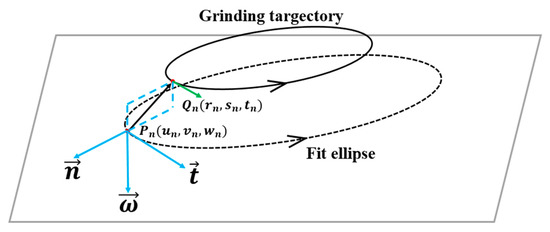 The relationship between the grinding trajectory and the fitted ellipse is shown in Figure 14 and the relationship between the two is shown in Equations (19)–(21). According to Equations (19)–(21), we can find the points on the grinding track: