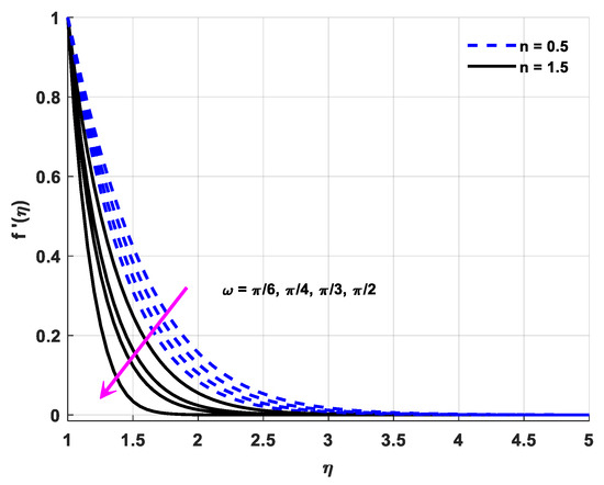 Imposing a magnetic field during the flow of fluid at an acute angle is called an inclined magnetic field. Discussing the magnetic effect related to fluid mechanisms is called as magnetohydrodynamics (MHD). MHD covers the key aspects of fluid flow during motion and has valuable applications such as magnetic drug engineering, MHD generators, cryosurgery, cooling of metallic sheets, cold treatments to destroy tumors, astrophysics, geothermal energy differentiation, reaction kinetics geophysics, mensuration flow in blood vessels, machinery efficiency, paper production, sensors, drug targeting, fiberglass manufacturing, bio preservation, material selection and cosmology. By placing a magnetic field over a flowing fluid, the Lorentz force is generated by the interaction of inter-mutual particles. Such important key and vital applications have induced researchers to put their focus into MHD. MHD flow with different fluidics models [1,2,3,4,5,6,7] has been encountered along with multiple features such as Carreau diffusion, activation energy, thermophoresis, inclined magnetic field, convection transportation of energy, etc., by different scholars. Khan et al. [1] studied the impact of convective boundary conditions on Carreau nanofluid moving while subjected to a stretching/shrinking cylinder and noticed that the velocity profile diminishes owing to a magnification in the magnetic parameter. Ayub et al. [2] employed a Keller box scheme to achieve the numerical solution of a magneto- Cross nanofluid accompanied by blood as a base fluid and found that electrically conducting fluid generates a force termed the Lorentz force, which is responsible for a decrement in the fluid’s velocity. Chen et al. [3] achieved the analytical solution of MHD fluid flow between two coaxial cylinders and came up with the conclusion that the velocity of fluid diminishes owing to a magnification in Grashoff number. Alsaedi et al. [4] employed MATLAB built in a bvp4c scheme to achieve the numerical solution of a magneto hybrid nanofluid flow between two coaxial cylinders and noticed that a positive change in magnetic field strength diminishes the performance of hybrid nanofluids. Wahab et al. [5] scrutinized the influence of an inclined magnetic field on a Cross nanofluid moving over a slippery surface and observed that magnification in the magnetic field parameters depreciates the velocity of the fluid flow. The impact of investigating the influence of higher-order chemical reactions and magnetic field effects on Cross nanofluid movement subjected to a stretching wedge was scrutinized in detail by Shah et al. [6]. They noticed that a positive change in Lorentz force generates a resistive force, which is responsible for a decrement in velocity phenomenon. Lim et al. [7] scrutinized the effect of thermal radiation and chemical reaction on magnetically driven Carreau fluid movement subjected to an expanding cylinder and found that a positive variation in thermal radiation parameters enhances the heat transfer rate of the fluid. Shaw et al. [8] recently discussed how the hydromagnetic flow of Cross-hybrid nanofluid influenced quadratic thermal radiation. It was found that hybrid nanofluid is more effective than other nanofluid models. Cross nanomaterials and MHD entropy, along with cubic autocatalytic chemical reaction, analysis has been made by Nayak et al. [9]. Soret and Dufour numbers and their physical impacts on MHD nanofluid over the geometry of a finned cavity including a rotating circular cylinder are discussed by Aly et al. [10]. Nanoparticles of Fe3O4/Cu/Ag-CH3OH in MHD stagnation point flow have been utilized over a heated surface and partial slip, activation energy facts which the study of Nandi et al. [11] has also engaged with. Recent studies [12,13] related to the hydromagnetic transport of Casson nanofluid and thermo-solutal convection of a nanofluid have been published with superb results.
