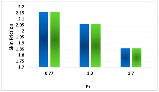 Revealing the consequences of Pr with the related skin friction coefficient.