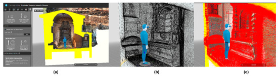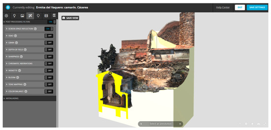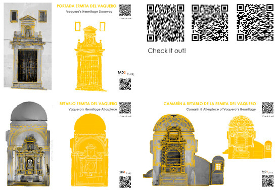 We do not believe that virtual reality can replace the physical experience of interacting with a building, but we do believe that it is a very important complement in order to preserve and spread heritage (Figure 27), a complement to which we cannot turn our backs. It ostensibly improves the concept of accessibility because it allows access to the monument to any person, regardless of their physical condition, place of residence or economic condition.