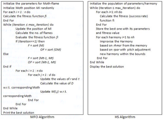 Furthermore, the performance of these algorithms is compared through the Friedman test. The test results are given in Table 15. The sum of ranks of the MFO algorithm through the Friedman rank test is higher than the HS algorithm. Furthermore, the p-value obtained through Friedman’s ANOVA table is less than 0.05. The details are presented in Table 16. Hence, from these results, it is concluded that the MFO algorithm outperformed the HS algorithm.