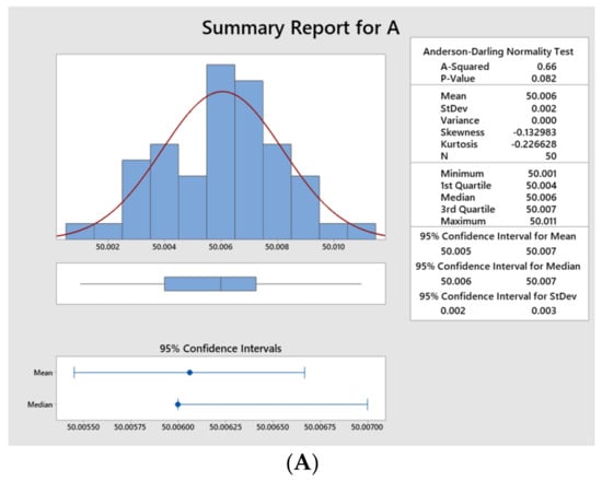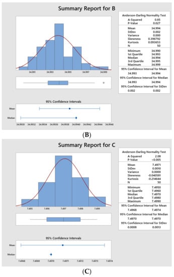 Dimension distribution of parts of ball bearing assembly. Part (A)—negatively skewed normal distribution; Part (B)—positively skewed normal distribution; Part (C)—negatively skewed non-normal distribution.