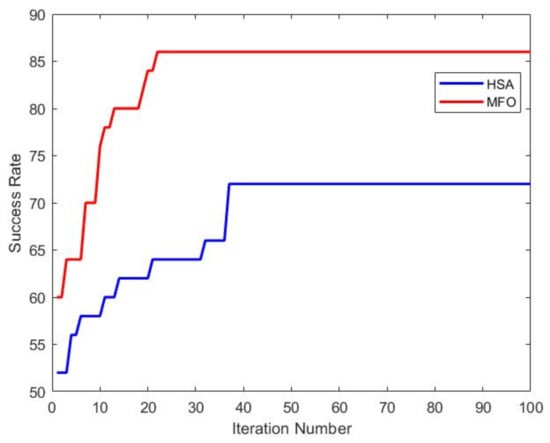 The convergence plot for both the MFO and HS algorithms based on the SR value is presented in Figure 7. From the plot, it is concluded that the MFO algorithm is quickly converged with a greater SR value when compared to the HS algorithm.