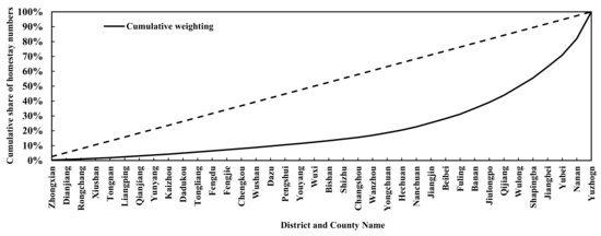 Lorentz curve of homestay distribution in Chongqing.