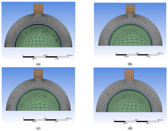Mesh Dependency Test. (a) 476,370 Cells, (b) 202,400 Cells, (c) 137,410 Cells, and (d) 92,516 Cells.