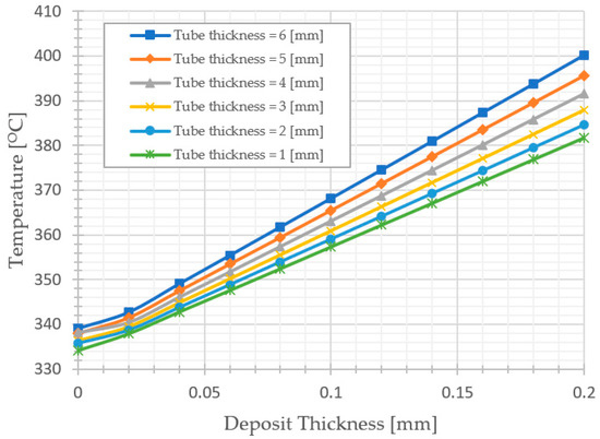 - Increasing the thickness of the deposit layer leads to a linear increase in the tube wall average temperature. Consequently, it is essential to consider the consistency between the chosen wall tube thickness and the maintenance schedule considering the deposit accumulation rates and the operating conditions.