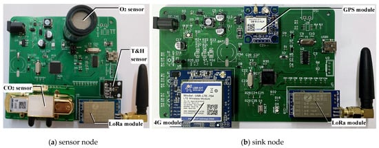 The hardware design of the quality perception system included a sensor node and sink node two modules. The physical photo of each module is shown in Figure 2.