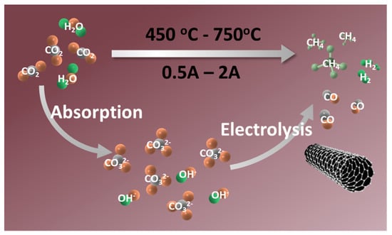 - Wu, H.; Ji, D.; Li, L.; Yuan, D.; Zhu, Y.; Wang, B.; Zhang, Z.; Licht, S. A new technology for efficient, high yield carbon dioxide and water transformation to methane by electrolysis in molten salts. Adv. Mater. Technol. 2016, 1, 1600092. [Google Scholar] [CrossRef]