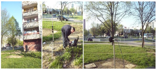 The presented traffic noise measurements for LAeq were attained with a sound analyzer (NOR-121, accuracy Class 0, Figure 4) with verification and calibration of the sound level meter, a measuring microphone (by the NORSONIC N-121 calibrator, accuracy Class 1), and one-third-octave filters. Traffic noise monitoring was carried out in accordance with the provisions of the corresponding standards [51,52] valid at the time of measurement. During the measurements, in addition to the already mentioned calibrations, the following observations were made: the microphone met the required scale needs and was primarily placed on the tripod and covered for protection from dust and wind (Figure 4). During measurements, people were prevented from getting close to the microphone, and measurements were carried out under wind speed conditions of up to 5 m.s−1, no rain or snowfall, and in temperatures of over 5 °C.