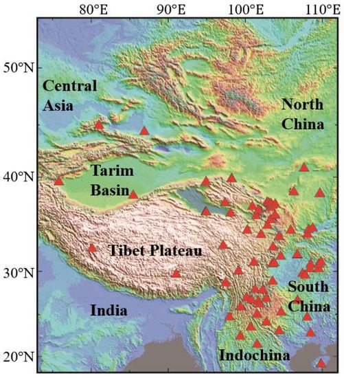- Deng, Q.; Cheng, S.; Ma, J.; Du, P. Seismic activities and earthquake potential in the Tibetan Plateau. Chin. J. Geophys. 2014, 57, 678–697. [Google Scholar] [CrossRef]