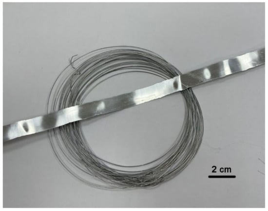 The increase in hardness and strength (approximately 1.2–1.3 times) of the new composite material compared to the original aluminum is explained by the inclusion of α-Al2O3 particles into the aluminum matrix. The α-Al2O3 particles are in their strongest allotropic corundum modification, which has a hardness close to that of a diamond. An unusual increase in the relative elongation of the composite by a factor of three makes it possible to roll up to 15 µm thick foil on conventional rolling equipment with a deformation of about 500%, as well as to draw 0.2 mm thick wire from Al-Al2O3 nanocomposites (Figure 12).