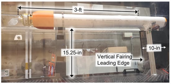 The dynamometer support structure is fabricated from 2 in by 2 in quad-rail, t-slot aluminum extrusion. The horizontal support is shrouded in a 3 in diameter polyvinyl chloride (PVC) pipe, as shown in Figure 9. The space between the rail and pipe is filled with sand to damp vibrations induced by fluid–structure interactions. The length of the vertical support is such that the horizontal support is in the center-line of the wind tunnel when mounted to a 2.5 in thick, 6 ft long, 2 ft wide optical breadboard that rests on the bottom of the wind tunnel test section.